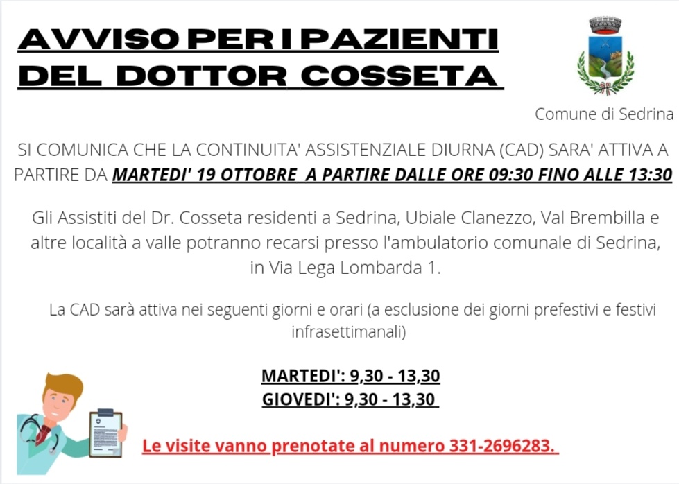 AVVISO PAZIENTI DOTTOR COSSETA