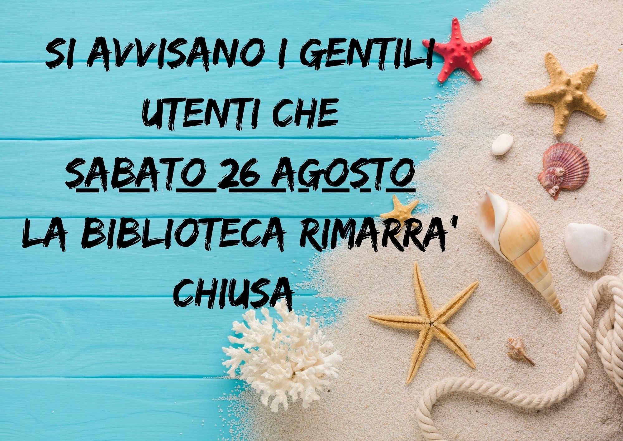 CHIUSURA BIBLIOTECA SABATO 26/8/2023