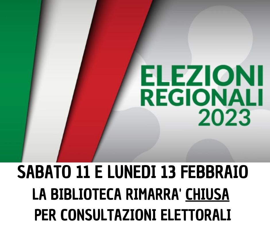 CHIUSURA STRAORDINARIA BIBLIOTECA IN OCCASIONE DELLE ELEZIONI POLITICHE NELLE GIORNATE DI SABATO 11.02.2023 E LUNEDI' 13.02.2023