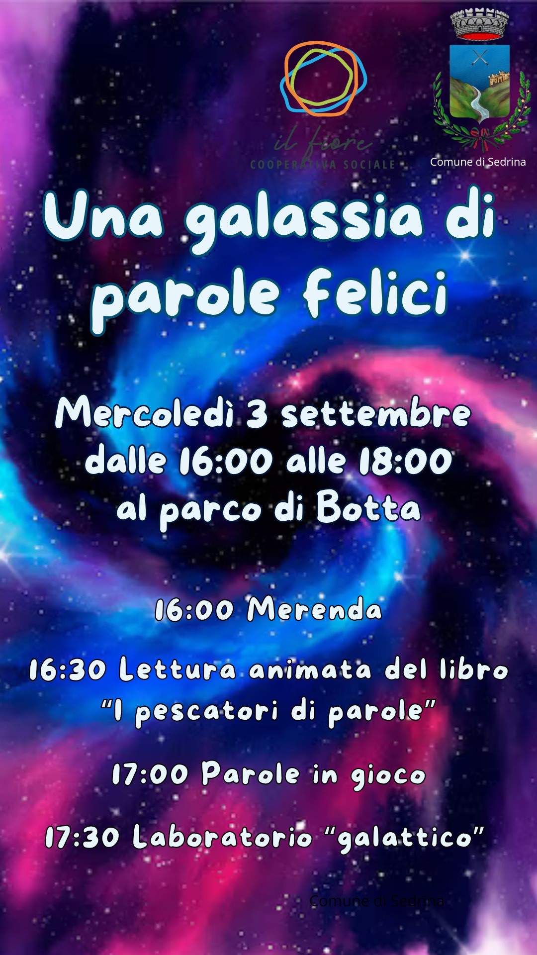 Descrizione Dalle 16:00 alle 18:00 Lettura animata, parole in gioco e laboratorio "Galattico" nel Parco di Botta.