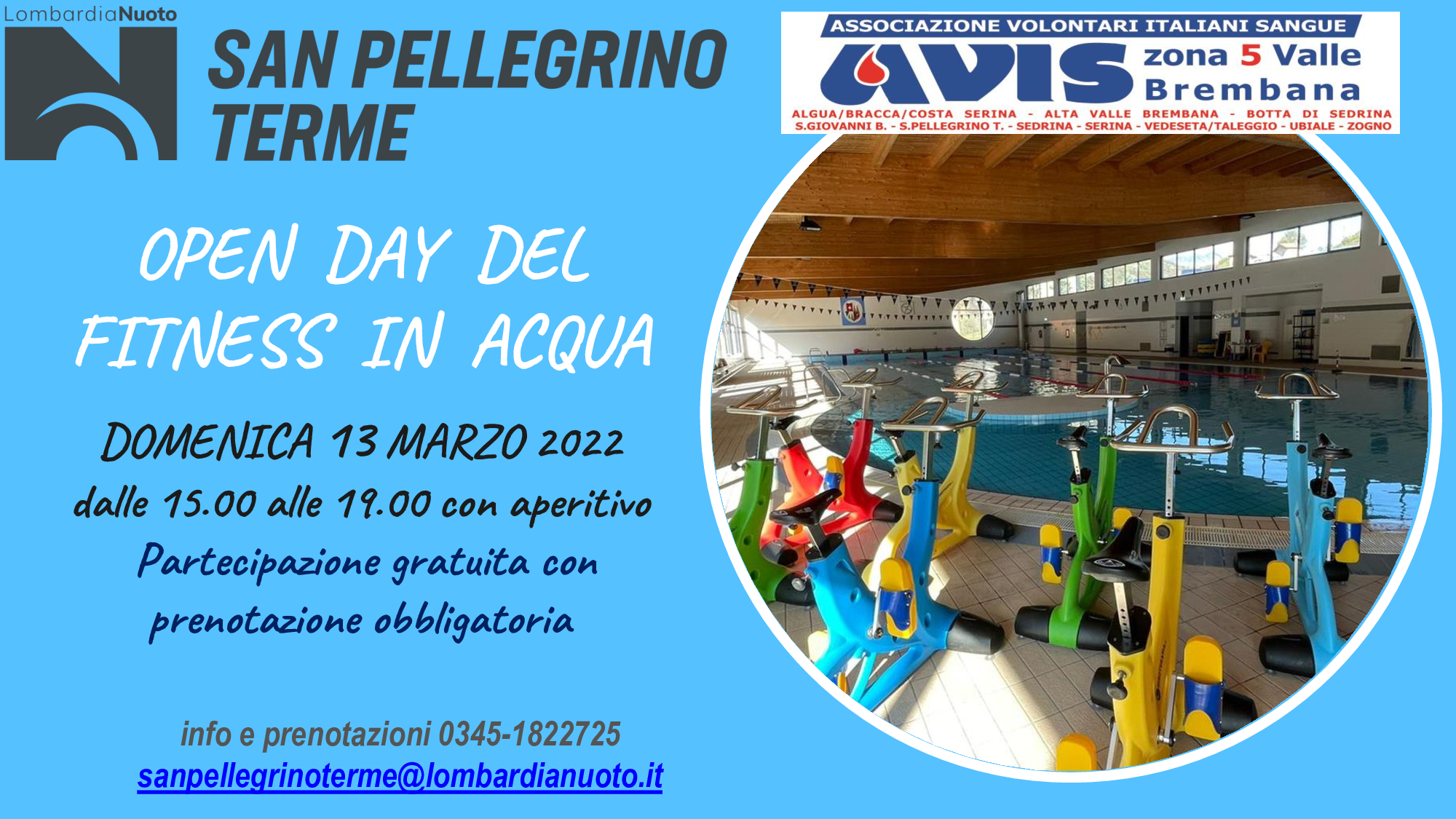 OPEN DAY FITNESS DOMENICA 13 MARZO 2022 Prima apertura primaverile della piscina di San Pellegrino Terme